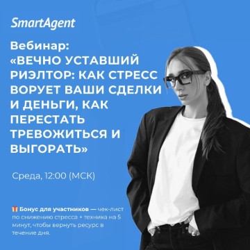 В СРЕДУ В 12:00! «Вечно уставший риэлтор: как стресс ворует ваши сделки и деньги, как перестать тревожиться и выгорать»