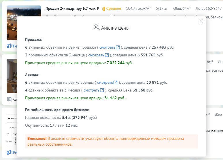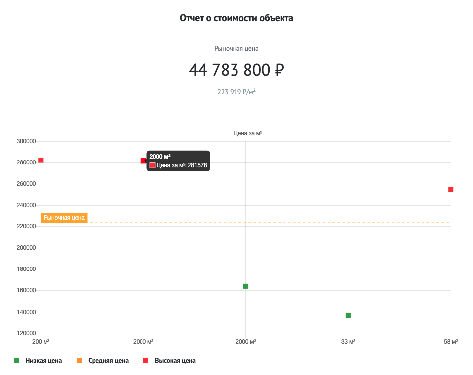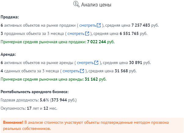 Рыночная цена объекта на базе реальных данных